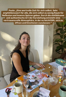 Mein Kurs ist ein sicherer Raum, in dem Menschen sich selbst begegnen dürfen - nicht nur still auf dem Kissen, sondern in der Begegnung mit sich und anderen, begleitet durch kreative Ausdrucksformen. Wir bleiben nicht nur auf der Ebene von "Gedanken beobachten" und "im Moment sein". Wir kultivieren emotionale Achtsamkeit.